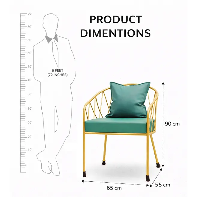 Ideal for living rooms, lounges, fine-dining restaurants, upscale cafés, offices, and waiting areas, the Golden Mist Luxe Arm Chair by Iron Street balances compact proportions (52 × 48 × 81 cm) with ample seating comfort, redefining luxury in modern spaces.
