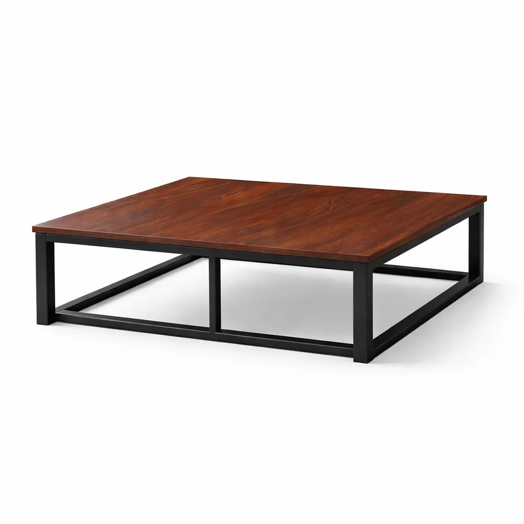 | Design | Modern Industrial featuring a low-profile, open-box perimeter frame and a seamless solid wood surface. |
