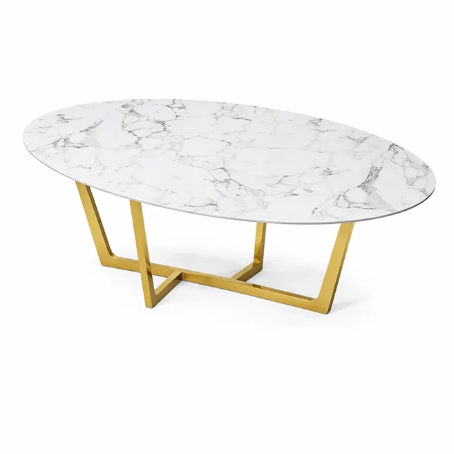 Luxury Oval Marble Coffee Table with Gold Metal Base