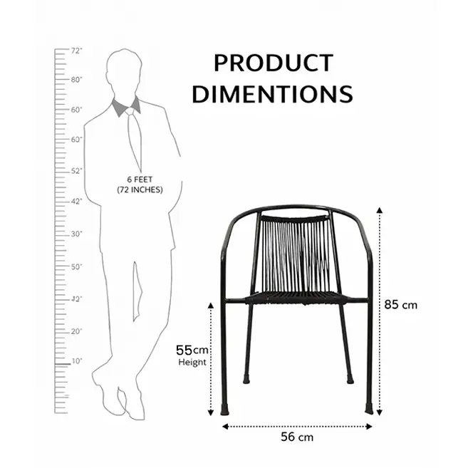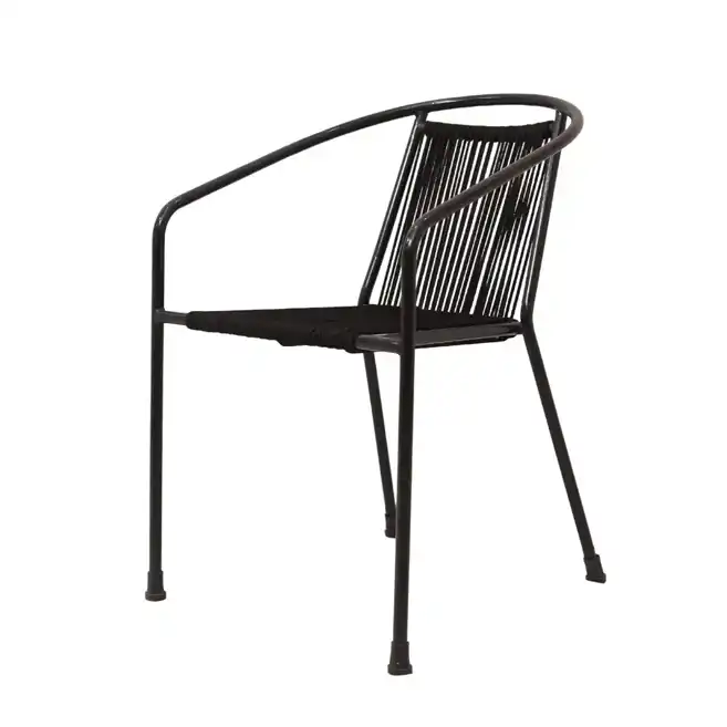 The Raven Loop Rope Patio Chair With Arms is a perfect blend of modern design, comfort, and durability, suitable for both outdoor and indoor settings. Crafted with a sturdy MS iron frame and finished in a matte black powder coating, this chair offers excellent strength along with long-lasting resistance to weather and rust.